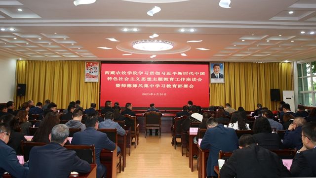 6月20日下午,西藏农牧学院召开学习贯彻习近平新时代中国特色社会主义思想主题教育工作座谈会暨师德集中学习教育部署会。学院党委书记、副院长、主题教育领导小组组长娄源冰出席并讲话。会议由学院党委副书记、院...