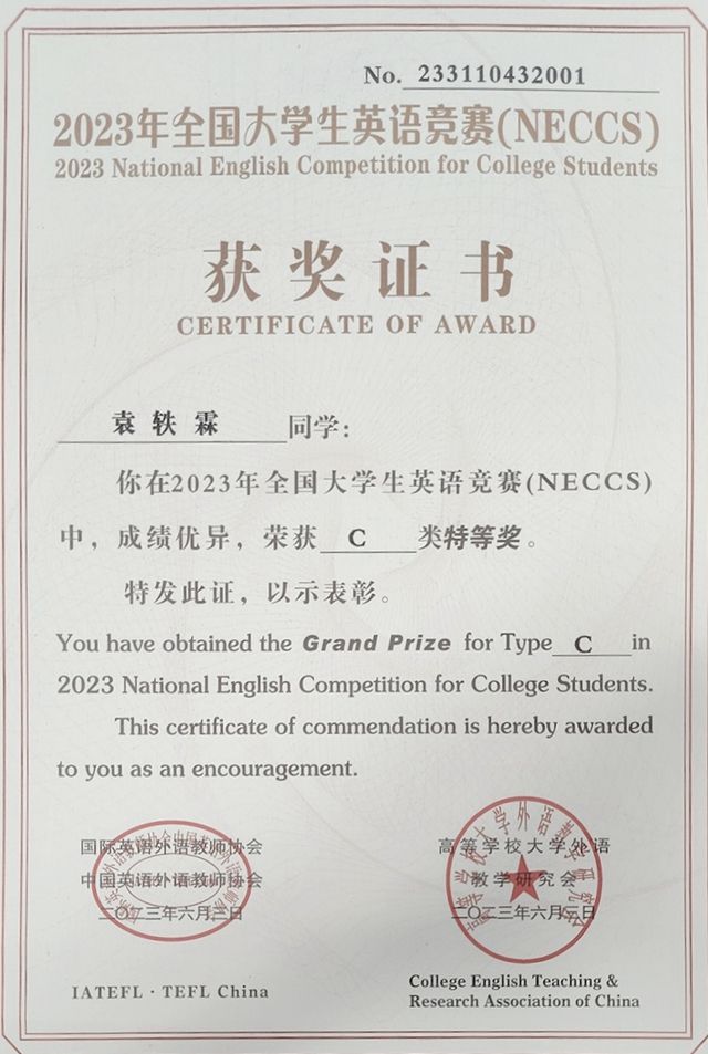 为推进主题教育走深走实,提高学生英语综合能力,拓宽学生学习英语的参与面,调动师生学习英语的积极性,以赛促学、以学促教。7月10日公共教学部举行了“2023年全国大学生英语竞赛”颁奖仪式。 全国大学生英...