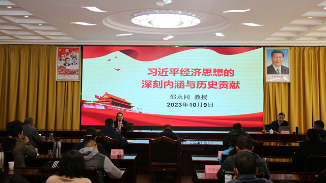 为持续深化理论武装,着力推动学习贯彻习近平新时代中国特色社会主义思想主题教育常态化、长效化,10月9日,欧博邀请天津商业大学经济学院邵永同教授作题为《习近平经济思想的深刻内涵与历史贡献》的专题讲座。讲...