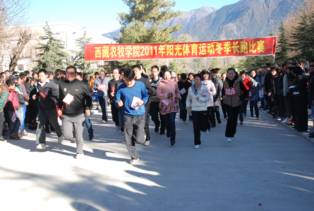 为进一步激励广大师生员工积极参加体育锻炼,增强师生员工身体素质,营造积极向上的校园体育文化氛围,2011年11月27日上午,西藏农牧学院开展了2011年阳光体育冬季长跑活动。 西藏农牧学院广大师生员工积极踊...