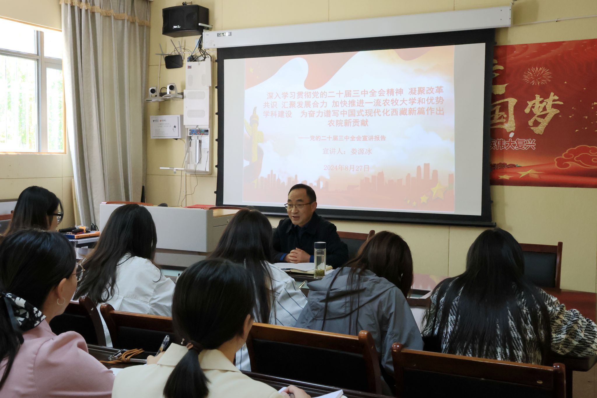 为上好新学期思想政治教育第一课,2024年8 月 27 日,校党委书记、副校长娄源冰到联系单位公共教学部开展党的二十届三中全会精神主题宣讲。公共教学部党委班子成员、教师代表及学生代表参加。娄源冰从“深刻领会...