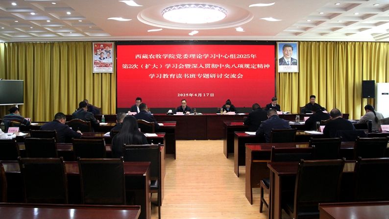 2025年4月17日,西藏农牧学院召开党委理论学习中心组学习会暨深入贯彻中央八项规定精神学习教育读书班专题研讨交流会。校党委书记、副校长娄源冰主持会议并总结交流。在校党委班子成员强巴央宗、苏大鹏、巩同梁、...