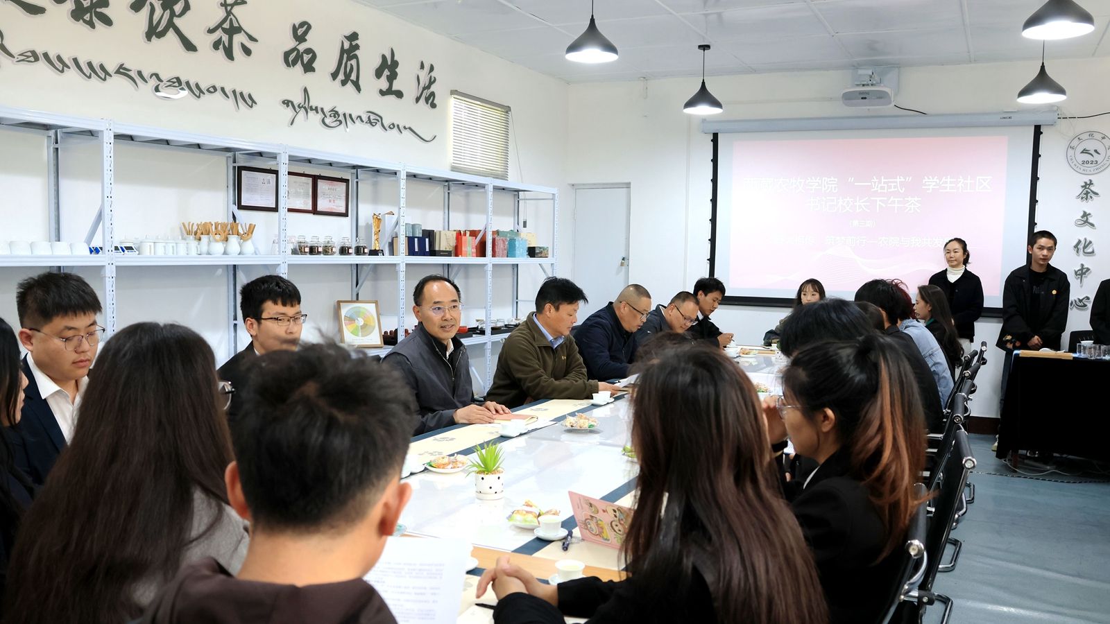 6月3日下午,学生工作处在“一站式”学生社区茶文化中心组织开展第三期“书记、校长下午茶”活动。校党委书记、副校长张兴堂、相关职能部门负责人、学院(部、所)辅导员与14名学生代表围桌而坐,以“薪火相传,...