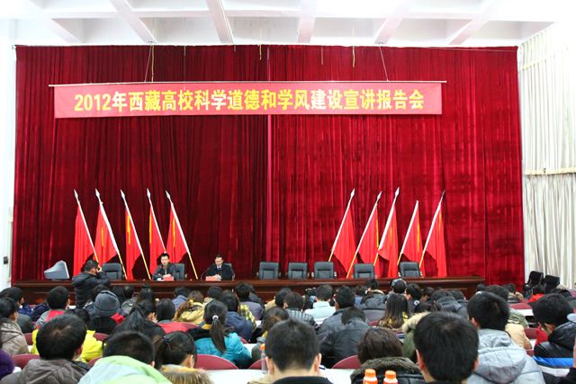 2012年11月27日晚,由自治区教育厅和自治区科协共同组织开展的西藏自治区2012年高校科学道德和学风建设宣讲活动在我院举行。宣讲活动由自治区教育厅高教处副处长陶然主持,我院党委委员、副院长赵垦田教授应邀做...