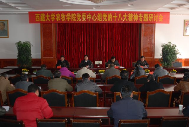 2012年12月11日,我院党委副书记、院长次旦平措主持召开院党委理论中心组学习会,专题传达学习12月9日在拉萨召开的区党委八届三次全委会精神。学院党政领导、全院县处级领导干部及助理参加学习会。 会议首先通...