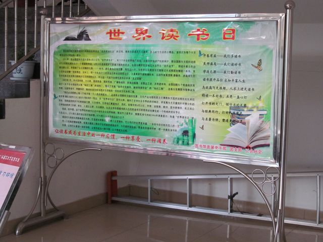 4月23日,在第十八个世界读书日来临之际,我院图书馆以“传承文明”为主题,通过制作宣传栏、PPT标语等向广大读者发出读书活动倡导,通告并推荐图书馆新书目录等,鼓励广大读者踊跃加入世界读书日活动,掀起了读...