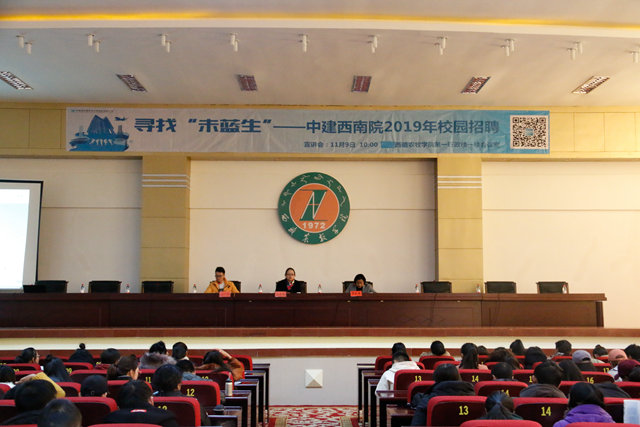 2018年11月9日上午,中国建筑西南设计研究院企业文化宣讲暨校园招聘会在学校一号行政一楼会议室隆重举行。中国建筑西南设计研究院西藏分院院长助理李孝陶、西藏分院行政专员 王松、西藏分院秘书黄子函、水土学...