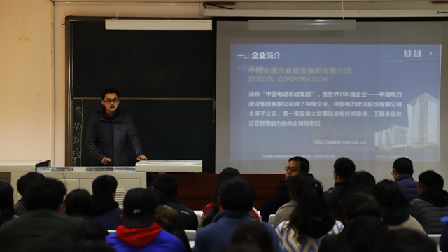 为推进2019届毕业生就业工作,经过水土学院前期的积极联系和准备,2019年3月28日上午,中国电建市政建设集团有限公司企业文化宣讲及校园招聘会如期在学校4104教室举行。水土学院党委书记达瓦、副院长王培清、公司...