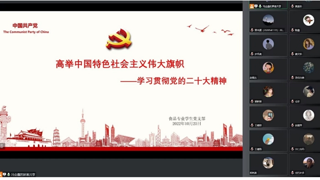 金秋十月,喜庆盛会。党的二十大报告振奋人心、催人奋进,学习宣传贯彻党的二十大精神是当前和今后时期的首要政治任务,为做好党的二十大精神理论阐释、学习宣传、宣讲教育各项工作,食品科学学院食品专业学生党...
