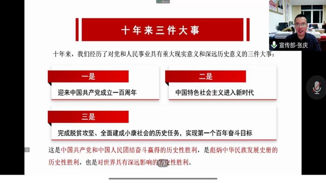 为深入学习“党的二十大会议精神”,全面贯彻习近平新时代中国特色社会主义思想,贯彻落实党的方针政策,切实把党员的思想和行动统一到党的二十大精神上来,2022年11月17日19时30分,资源与环境学院党委利用“腾...