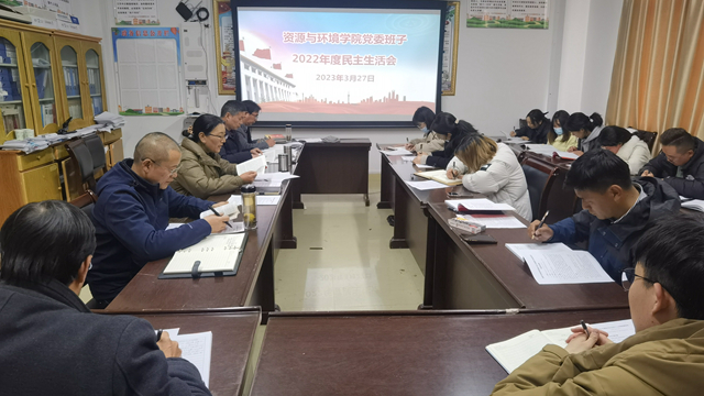 3月27日,资源与环境学院党委班子在资环学院会议室,召开了2022年度领导班子民主生活会。学校纪委监察室王元林同志到会指导并讲话。资源学院各党支部书记、科室负责人、党员代表出席会议、学生群众代表列席会议。...