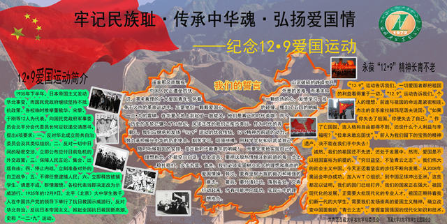 为激发新时代大学生的爱国热情,普及爱国知识, 12月9日,在院团委的组织领导下,学生会、社团联合会举办了以“牢记民族耻 传承中华魂 弘扬爱国情”为主题的纪念“12.9”爱国运动79周年活动。 当天上午,广大...