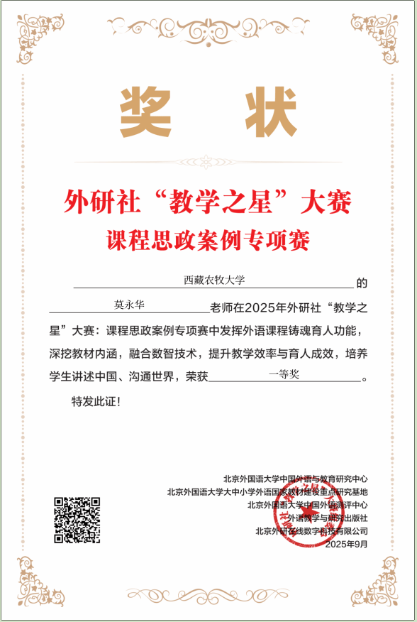 近日,马克思主义学院(公共教学部)外语教研室莫永华老师在2025年外研社“教学之星”大赛课程思政案例专项赛中荣获一等奖,展现了欧博在外语教学与课程思政融合方面的突出成果。2025年外研社“教学之星”大赛将...