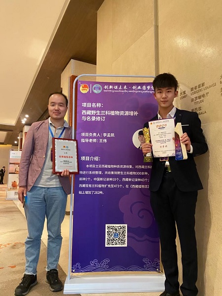 2021年5月24日上午10:00,我院20级农业资源与环境专业学生顾琪,在全区第八届成才杯大学生课外学术科技作品开幕式中,作为参赛学生代表发言。 2021年5月28日我院17级农业资源与环境专业同学李孟凯以《西藏野生兰科植物资源增补与名录修订》在西藏自治区自然科学类中获得特等奖。 我院18级园林专业余应鹏、20农资顾琪以《密叶红豆杉的人工培育》作品在西藏自治区自然科学类中获得一等奖。我院王伟老师、杨红老师分别荣获西藏自治区最佳指导老师荣誉称号。获奖老师及同学在"大胆假设,小心求证"的科研实践中,整合专业基础知识和实际操作能力,打造具有高度的科学精神和创新能力,取得了良好的成效。