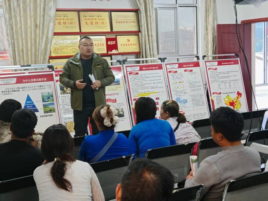 5月6日,团队与察隅县农业农村局、科技局座谈,围绕“功能农业赋能边疆乡村振兴”展开深入研讨。山西农业大学林文副教授结合察隅县气候特点与土壤资源禀赋,详细分析了功能农业在当地的适用前景,提出了针对茶叶、特色水果等作物的功能化开发路径。欧博侯磊副教授分享了团队在察隅县开展的土壤资源调研成果,重点介绍了土壤养分优化与作物营养强化技术,为当地特色产业发展提供了理论支撑与技术参考。此外,还围绕在察隅县建立相关产业研究中心进行了交流。座谈会后,团队在察隅县城中心吉公社区广场开展功能农业科普活动。通过图文展板展示、宣传手册发放、现场咨询讲解等形式,向往来群众全面普及功能农业的核心理念、技术优势及在察隅县的实践成果,重点介绍了功能农业如何通过提升农产品营养品质助力农民增收、服务健康中国战略。