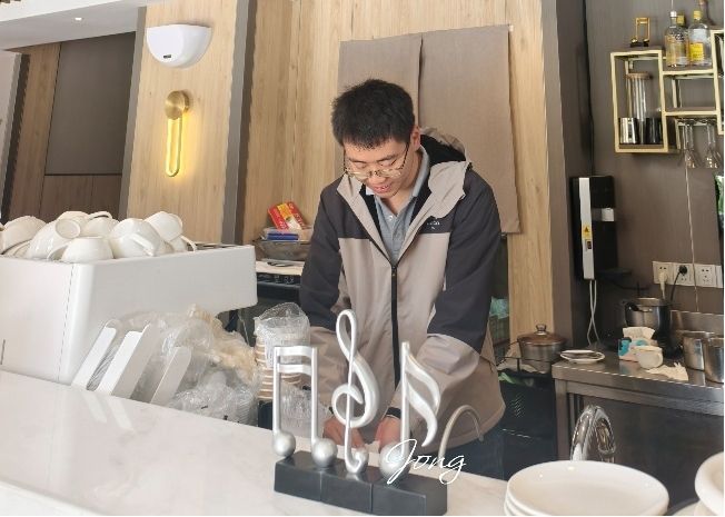 在走访过程中,老师们深入酒店前厅、客房、餐饮等实习岗位,实地察看学生的工作环境与操作流程。在后客东来酒店前厅,学生们正熟练地为客人办理入住登记、解答咨询,礼貌得体的服务得到了客人的点头认可,也品尝了由学生们亲手制作的咖啡;在贡布花园酒店,客房部的同学们则穿梭于楼层间,铺床叠被、清洁消毒,动作麻利规范,展现出扎实的专业技能;餐饮部同学则忙碌于宴会厅,正在熟练地为“2025年中国健身锅庄舞大赛”开幕式宴会进行摆台,洋溢着自信与从容。王忠红副院长不时停下脚步与学生交流,询问工作强度、适应情况及劳动技能提升感悟,叮嘱大家在实践中既要锤炼专业本领,更要传承吃苦耐劳的劳动精神。
