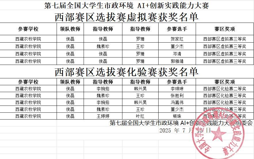 近日,第七届全国大学生市政环境AI+创新实践能力大赛西部赛区成绩揭晓。欧博资源与环境学院、公共教学部联合选派的5支本科生队伍共15名同学,从校级预选赛一路突围,在地区选拔赛中荣获二等奖1项、三等奖8项。