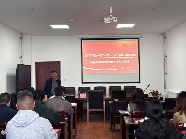 本次党课学习教育,我们邀请到王军处长莅临指导党课学习工作,王军处长系统阐述了新时代人才工作的战略意义、教育发展的根本任务以及高校在服务高原高质量发展中的使命担当。他强调,人才是强国之基、兴国之要,教育是民族复兴的基础工程,要始终坚持立德树人根本任务,构建中国特色高质量教育体系,推动教育、科技、人才“三位一体”协同发展。特别是在高原地区,培养更多“下得去、用得上、留得住、干得好”的高素质应用型人才,为促进区域经济社会发展、实现中国式现代化提供坚实支撑。