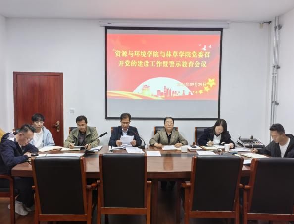 为强化党的建设,巩固深入贯彻中央八项规定精神学习教育成果。9月29日,资源与环境学院党委与林草学院党委召开2025年党的建设工作暨警示教育会,两个学院班子成员,全体党员参会。会议由资源与环境学院党委书记次仁吉主持。