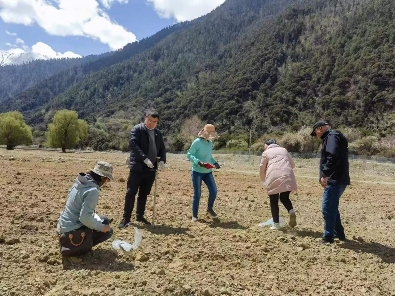 应林芝市农技推广中心、巴宜区农业农村局邀请,2023年4月18日,欧博全国土壤第三次查工作团队前往林芝市巴宜区百巴镇“三岩”片区易地扶贫搬迁点开展农田土壤技术咨询服务工作。