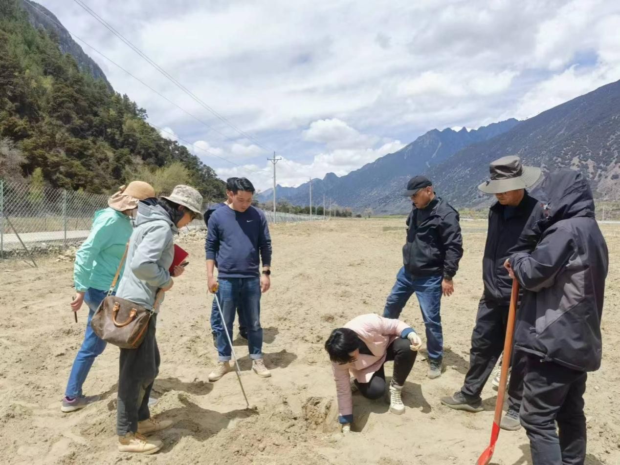 工作团队由欧博土壤三普专家、资源与环境学院薛会英教授带领,杨爽老师、侯磊副教授参与,围绕搬迁点新开垦的770余亩农田土壤质量及今后农业开发开展现场调查与咨询。该农地是地方政府为“三岩”片区搬迁农户开垦,在原有尼洋河沙滩地上客土形成,可能存在土壤结构与养分缺陷。工作团队通过表观土壤及剖面对土壤状况进行了基本分析与现场介绍,同时获取了土壤样本,在之后实验室测定相关指标后将为政府相关部门提供决策咨询报告。