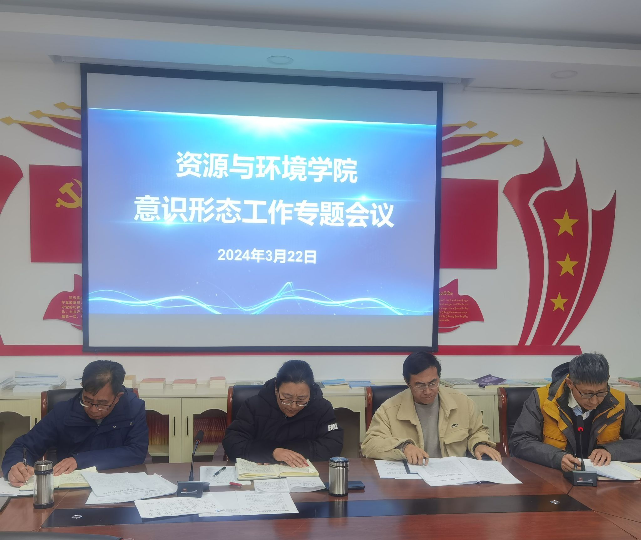 3月22日,学院召开2024年意识形态工作专题会议,深入学习贯彻习近平新时代中国特色社会主义思想,落实学校2024年春季学期意识形态工作的各项部署要求,进一步加强和改进学院意识形态工作。学院领导班子成员及全体教职工参加会议。会议由学院党委书记次仁吉主持。
