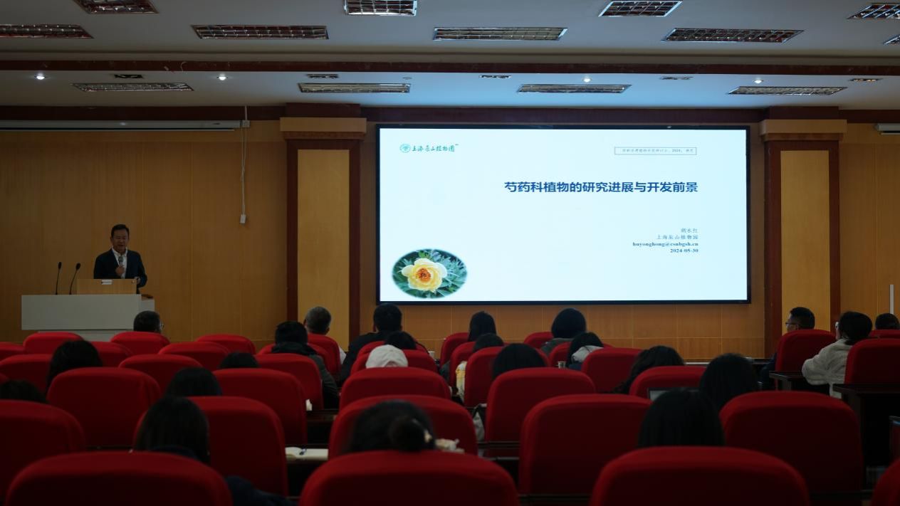 中国科学院上海辰山植物园执行园长、中国科学院上海辰山植物科学研究中心副主任胡永红教授级高级工程师,开展了题为《芍药科植物的研究进展与应用前景》的学术报告。胡老师在报告中系统梳理了芍药科植物的研究进展,并展望了其在医药、食品和化妆品等领域的应用前景。他指出,芍药科植物具有丰富的生物活性和药用价值,在中药产业中具有重要地位,此外还在食品添加剂和化妆品原料方面具有很大潜力的市场需求。