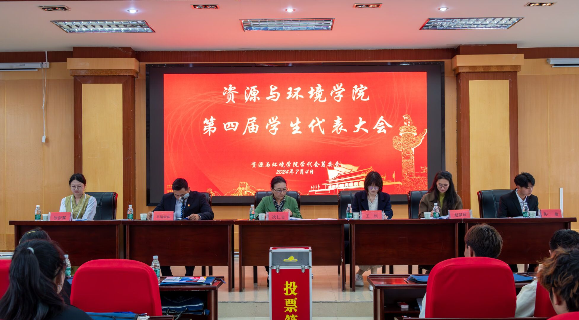 2024年7月4日上午9:30资源与环境学院在研究生苑会议室顺利召开了第四届“学代会”。学院党委书记次仁吉、学生科科长平措顿珠、团总支书记王凯、公教部团总支书记赵家顺,校学生会轮值主席赵鑫茜及学生会主席团、各代表共120人参加会议。