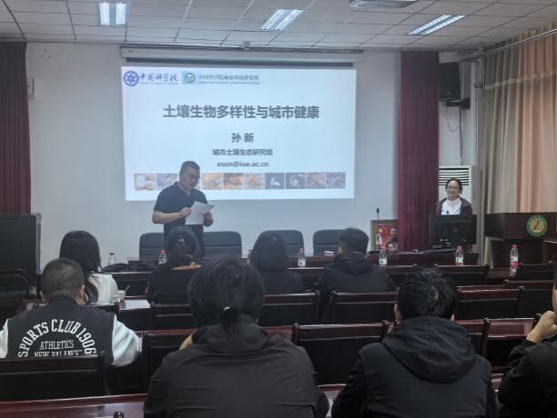 孙新作了题目为《土壤生物多样性与城市健康》的学术报告。结合自身多年来的科研实践,围绕城市土壤质量演变机制,以土壤生态过程的重要驱动力土壤动物为研究对象,以方法-格局-机制为总体思路,总结了城市土壤动物及其共生微生物的多样性空间分布格局及其环境驱动机制。参会师生从自己的研究角度提出了相关问题,研究生巩佳鑫就藏北高寒草甸土壤微生物群落及其与城市人为干扰之间的关系、研究生刘星宇就植物根际微生物与土壤动物之间的关联进行提问,侯磊从土壤生物群落健康、城市生态系统修复等角度进行提问,孙新一一进行解答,共同探讨。本场学术报告使参会者的科研视野得到进一步开阔,对欧博人才培养、科学研究起到了积极的作用。