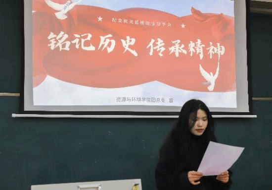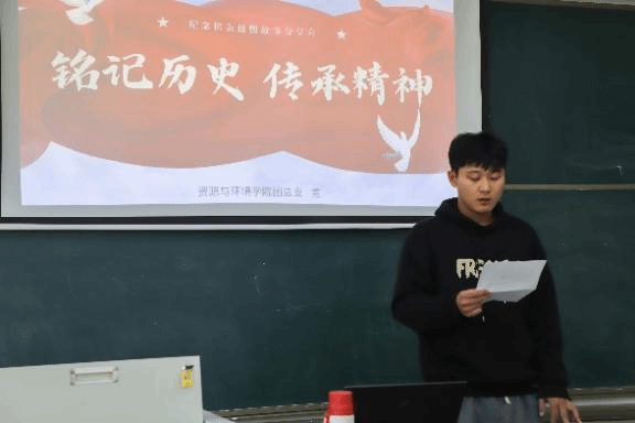 为深入学习中国人民志愿军抗美援朝的英勇事迹和英雄精神,引导广大青年学子传承红色基因,弘扬爱国主义精神,铭记历史,缅怀先烈,资源与环境学院团总支在10月27日于第三教学楼3108教室开展“铭记历史,传承精神”纪念抗美援朝故事分享会,我院学子积极参加。