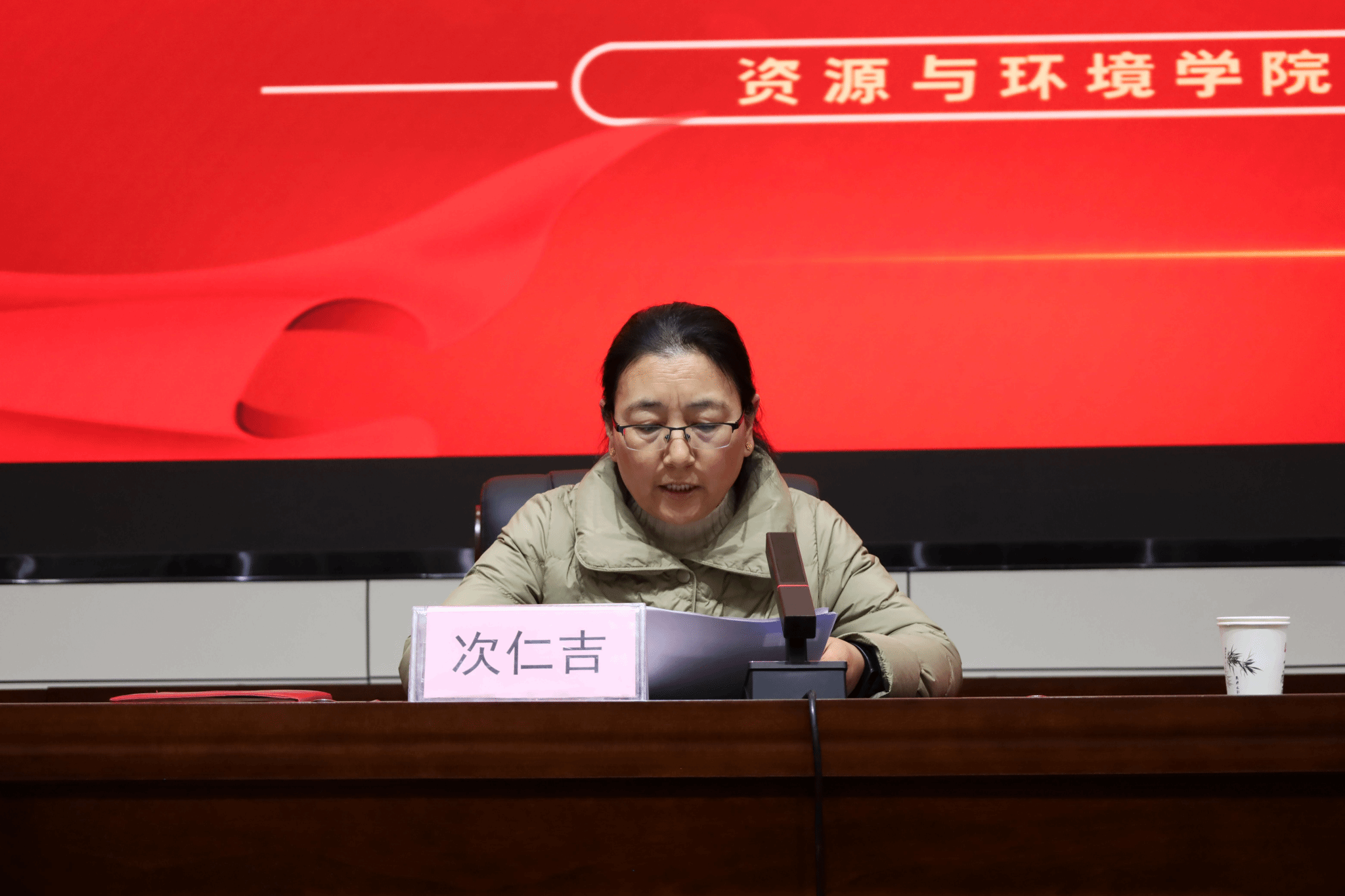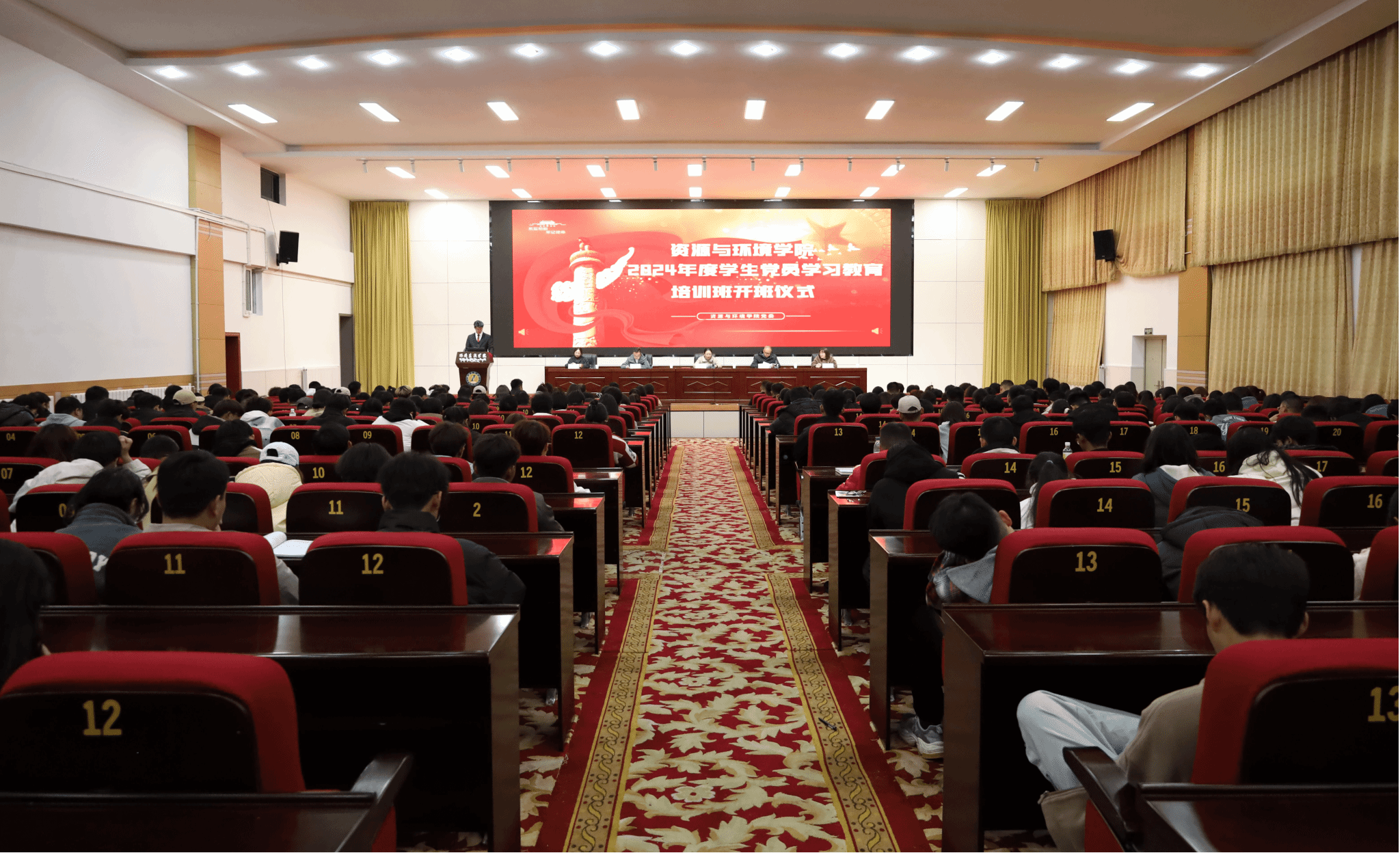 为深入贯彻落实党的二十大精神,自治区第十次党代会和区党委十届历次全会精神,落实区党委党的建设工作的要求,教育引导全校广大党员坚持用习近平新时代中国特色社会主义思想凝心铸魂、指导实践,争做有理想、敢担当、能吃苦、肯奋斗的新时代好青年。学院党委结合下属学生党支部工作实际,于11月11日晚在一号行政楼学术报告厅举行了资源与环境学院2024年度学生党员学习教育培训班开班仪式。学院党委书记次仁吉,学院党委副书记、院长孙自保,各学生党支部书记出席仪式。开班仪式由学生第二党支部书记和俐主持。