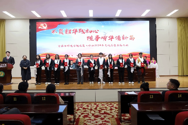 为确保学院党员工作站工作有序开展,切实提高学生干部综合能力素质,进一步增强党组织在学生群体中的凝聚力和引领力,激励学生干部、干事积极履行职责,保障工作高效运行,发挥更大作用。11月11日晚,党员工作站在一号行政楼学术报告厅开展“不负韶华践初心 踵事增华谱新篇”为主题的换届暨表彰大会。学院党委书记次仁吉,学院党委副书记、院长孙自保,各学生党支部书记出席本次大会,党员工作站全体成员、全体学生党员、入党积极分子参会。