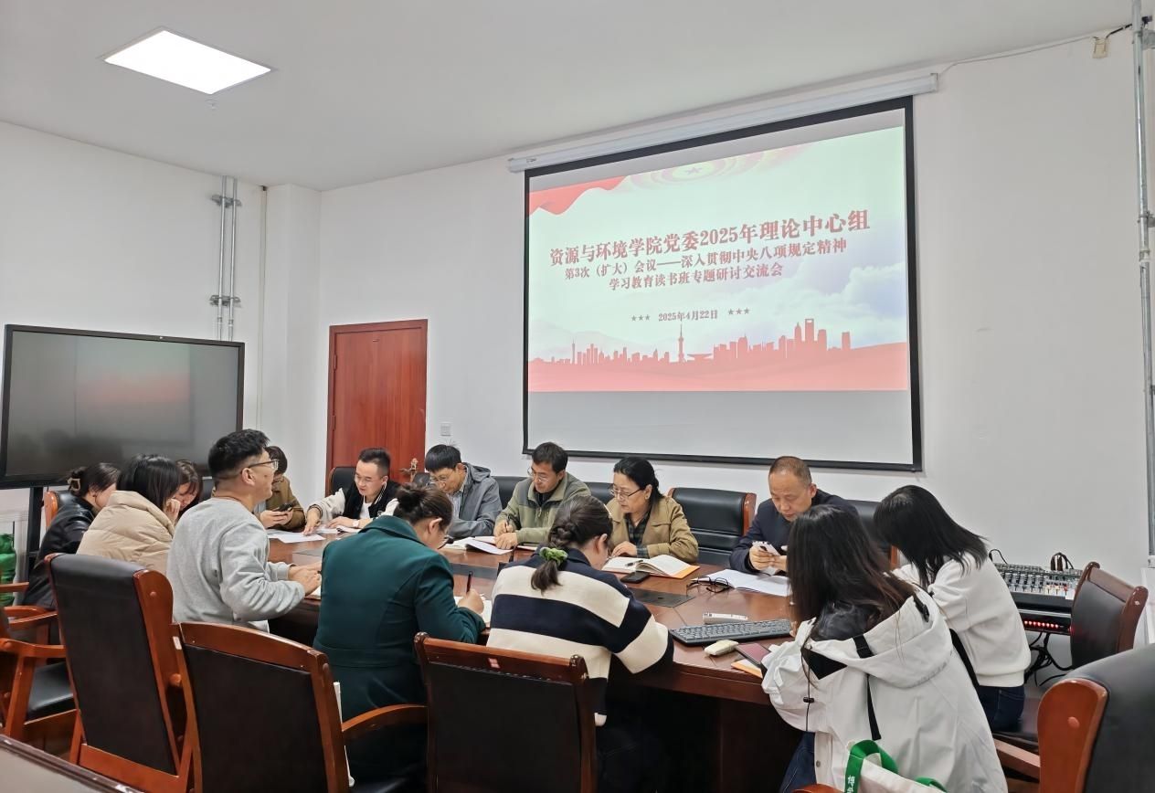 4月22日18:00,资源与环境学院召开2025年党委理论学习中心组第3次(扩大)会议——深入贯彻中央八项规定精神学习教育读书班研讨交流会,学院党委书记次仁吉主持,学院班子成员、下属党支部书记等14人参会。