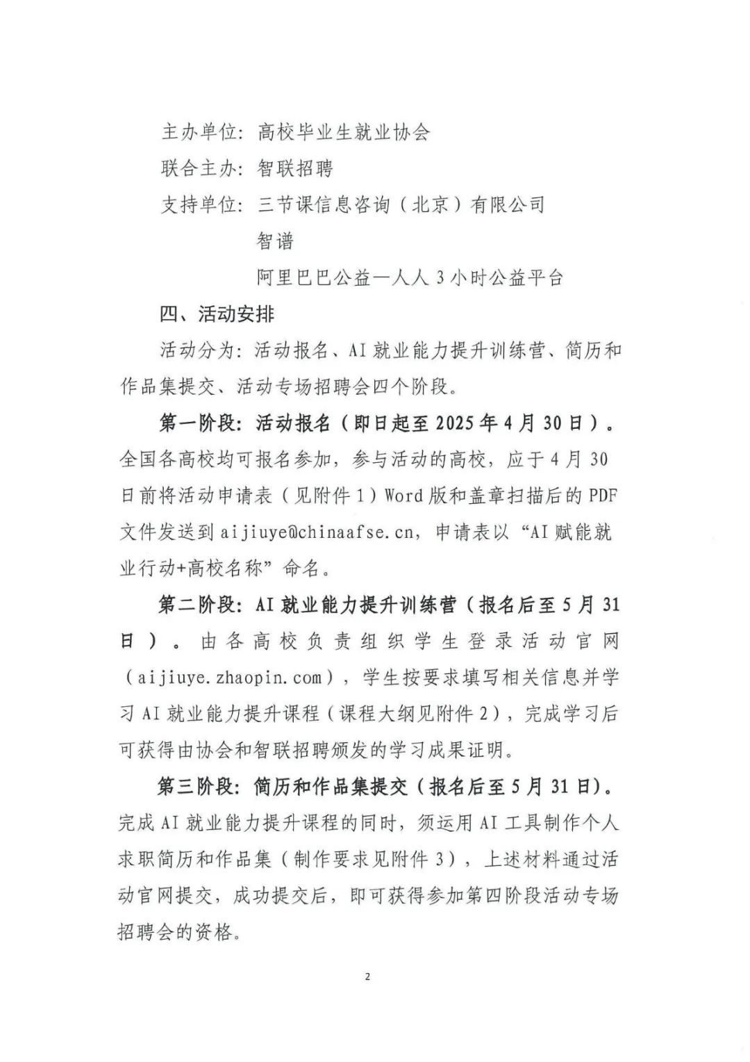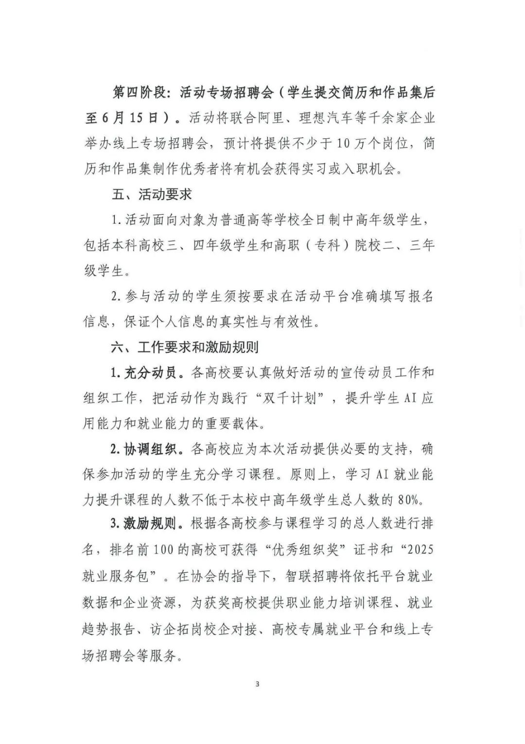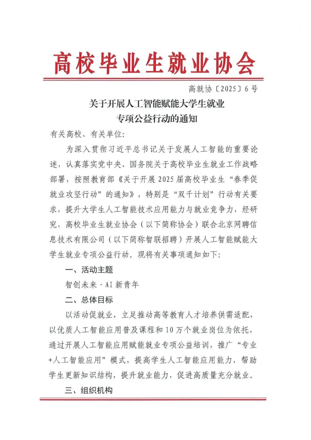 关于开展人工智能赋能大学生就业专项公益行动的通知