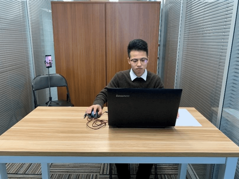 (3)考试开始前,考生需要先登录移动端“智考通”,用前置摄像头360度环绕拍摄考试环境,随后将移动设备固定在能够拍摄到考生全身(含侧面)、考试桌面、完整的考试设备(电脑屏幕和键盘等)、考生双手动作(考生行为)及考生周围环境的位置上继续拍摄考试全程(详见说明书中《智考通操作手册》《智考云在线考试规范》)。请考生注意,视频拍摄角度不得存在盲区,不得无故中断视频录制,考试视频数据不得缺失,不得出现影响考务人员判断本场考试有效性等情况,否则将影响成绩的有效性,由考生自行承担后果。
