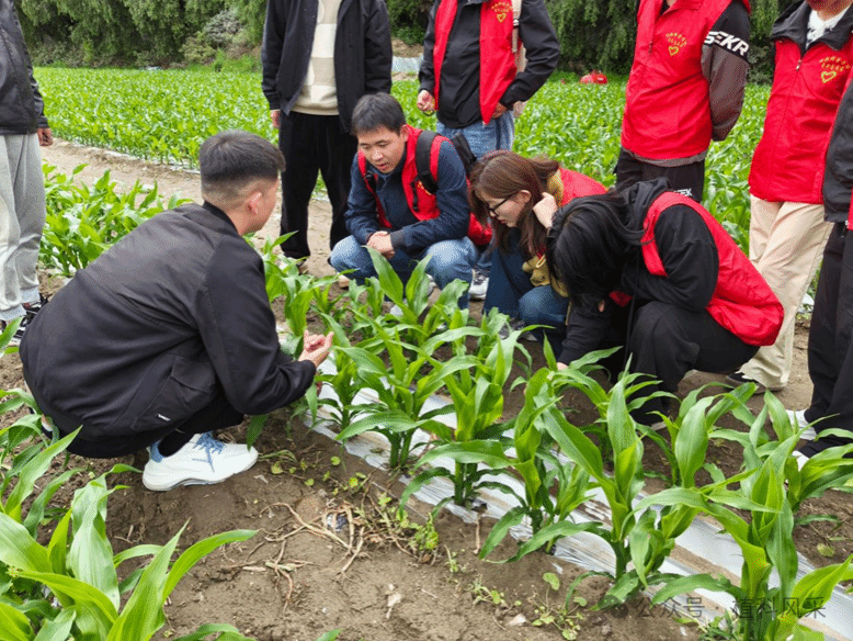 活动中,志愿队来到由植科学院柔性引进人才候鹏研究员与胡单副教授合作建设的玉米超高产栽培研究生实践基地。该基地在2024年10月刷新全国玉米单产纪录(1672.86公斤/亩)。志愿队通过实地调研、组织座谈会等形式与基地4名研究学员深入学习交流,了解玉米生产现状,提高了农科学子专业能力,提振了农科学子的信心。