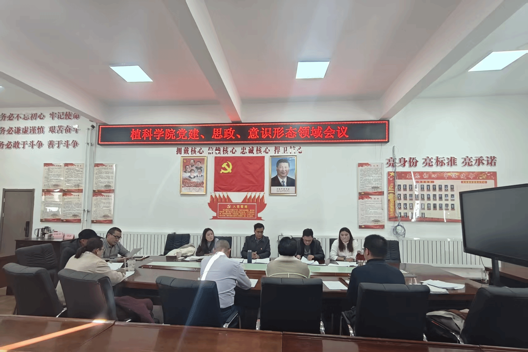 2025年12月11日(周四)下午3:30,植科学院党委在四楼会议室。召开了党建思政和意识形态工作会议,学院党委委员、师生党支部书记(副书记)、支委委员、党员代表参会。会议主题:加强理论学习、开展交流研讨,巩固深化本学期第二次集中大课学习成果;研判学期末安全和意识形态风险,明确岁末年终的安全任务和形势要求;党支部书记作抓党建工作述职报告,开展党建工作考评;动员组织党建课题项目的申报工作。会议由党委书记达瓦主持。