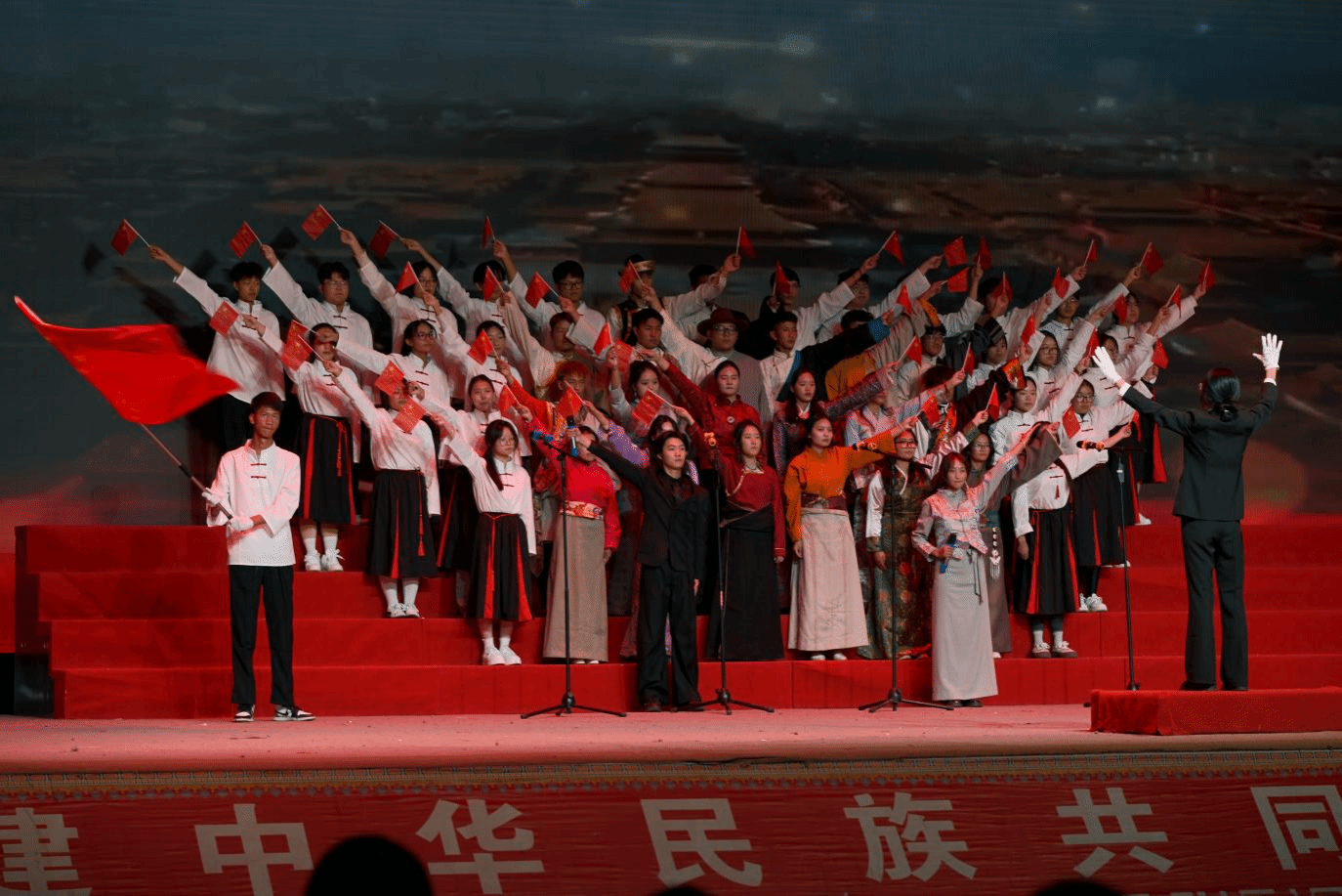 值得一提的是,在学生们演唱红歌的过程中,每首歌曲背后的红色故事与历史内涵也通过主持人的介绍转化为鲜活的集体教育素材,让现场成为了红色文化传播的生动课堂。观众们挥舞着手中的国旗,与台上的选手们遥相呼应,歌声、掌声与欢呼声交织成动人乐章,形成了一片红色的海洋。