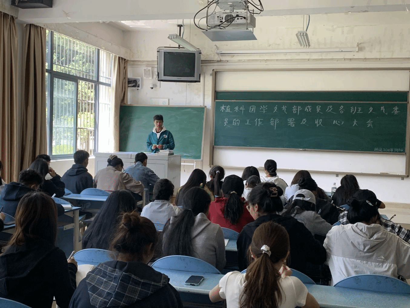 为进一步落实好开学“第一课”要求,学习宣传党中央关于青年工作、“三农”工作、教育工作的重要精神要求,深入学习习近平总书记建团100周年讲话精神和五四青年节寄语精神,加强青年学生思想政治和大学生教育管理服务,全面探究和实践班团一体化运行机制,明确班委和团学组织岗位职责和工作任务,不断增强团学组织凝聚力和思想教育工作向心力,在植科学院党委的关心指导和精心组织,2024年8月11日-19日,植科学院团总支分别在一站式服务中心二楼会议室、一教1107教室、一教1102教室、一教1101教室、三教3102教室分层分类开展了7场次开学“第一课”、收心会、工作会,对植科学院各年级团学干部加强了思想教育、动员部署了重点工作。