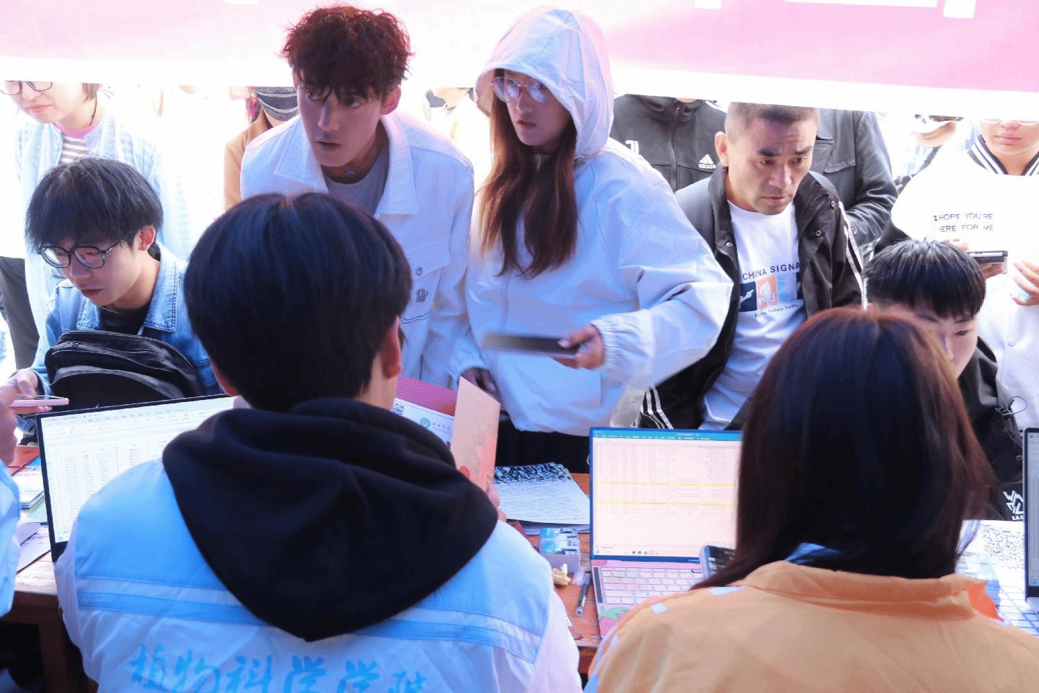 更值得注意的是班任助理和挂班党员以及辅导员老师,全时段、全方位地候在报到点,紧锣密鼓组织填写信息、事无巨细安排入学工作、尽职尽责回答各类疑问,几乎是臀不沾椅、人不离位的前后奔忙。他们不惧高温、不惧辛劳、不惧考验的精神,生动诠释出植科学生干部们全心全意为师生办实事的优良传统,以及师长们用百分百的真心真情为新生们打造未来四年“另一个家”的态度与决心。