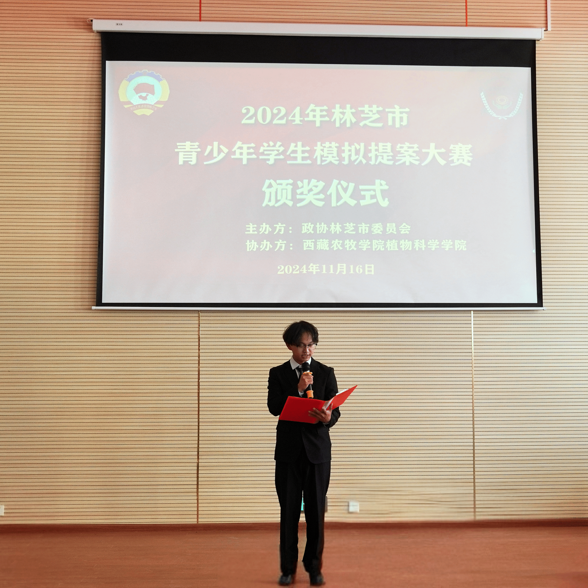 2024年11月16日,林芝市青少年学生模拟提案大赛颁奖仪式在西藏农牧学院第六教学楼6603举行。本次大赛由中国人民政治协商会议林芝市委员会主办,西藏农牧学院植科学院承办。大赛活动旨在青少年深入认识中国社会,激发爱国热情,提高实践调研能力,增进对中国特色民主政治协商制度的了解,培养青年学子的社会责任感和参政议政能力。林芝市政协提案委副主任益西江措、林芝市政协提案委办公室一级主任科员催勤思、学院团总支书记罗晓莉担任了评委。活动得到了大学生们的积极参与,充分展现了新时代农院青年的风采。