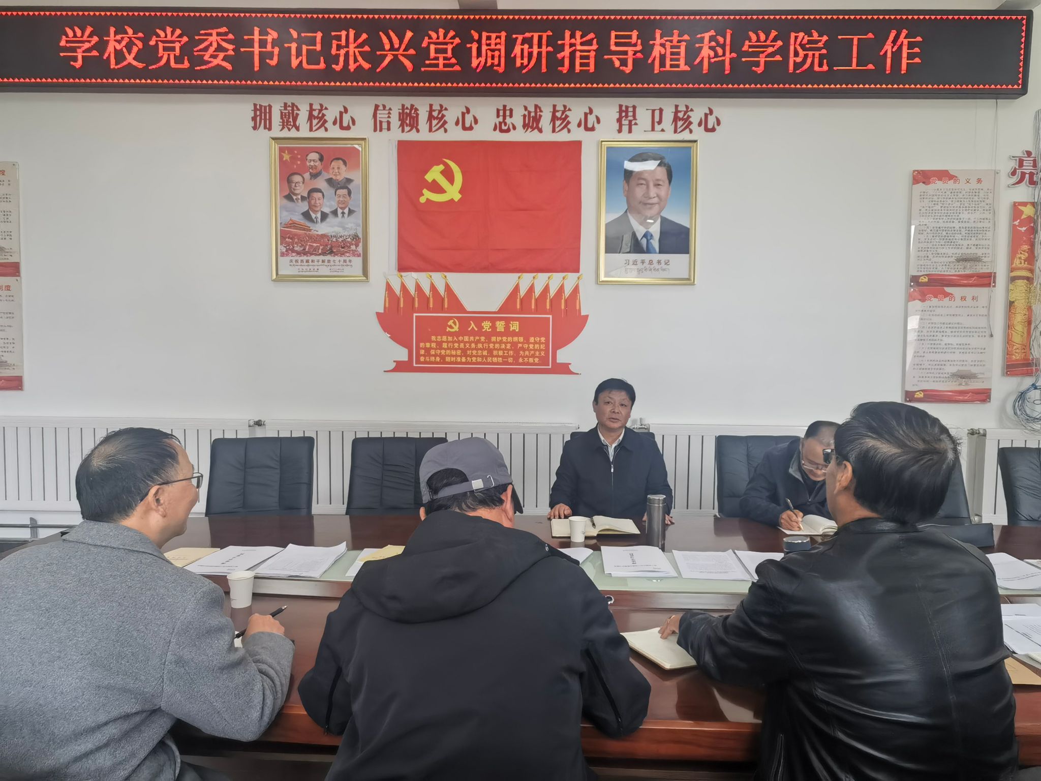 在调研指导座谈会上,张兴堂书记听取了学院党政领导的工作汇报,详细了解了学院的发展历程、党建工作及特色亮点、学科专业建设、单位机构框架、师生结构分析、科研与社会服务、科技小院、短板与弱项、问题和困难。为切实做好下一步工作,张兴堂书记对学院的重点工作、近期工作作出了具体而科学的指导,提出了希望和要求。他指出,一是加强党对教育的领导,抓好党建工作,强化党建引领,持续狠抓作风建设,深入开展好学习教育,列出问题清单、提出整改措施,为推动学校高质量发展提供坚实基础;二是进一步优化学科专业结构,以新农科和新质生产力为牵引,以市场和社会需求为导向,锚定林芝市两大工程项目建设,赋予老专业新活力、新能量,进一步提升人才培养质量和就业质量;三是进一步加强学科建设,扎实做好一流学科建设,狠抓作物学申博补课,找准短板弱项,拿出举措迎难而上,立足高原特色、西藏特点、自身优势加强学科建设等重点工作的推进;四是切实做好近期的重点工作,净化育人环境,展示学院风采,以良好的精神面貌和工作作风做好近期重点工作。