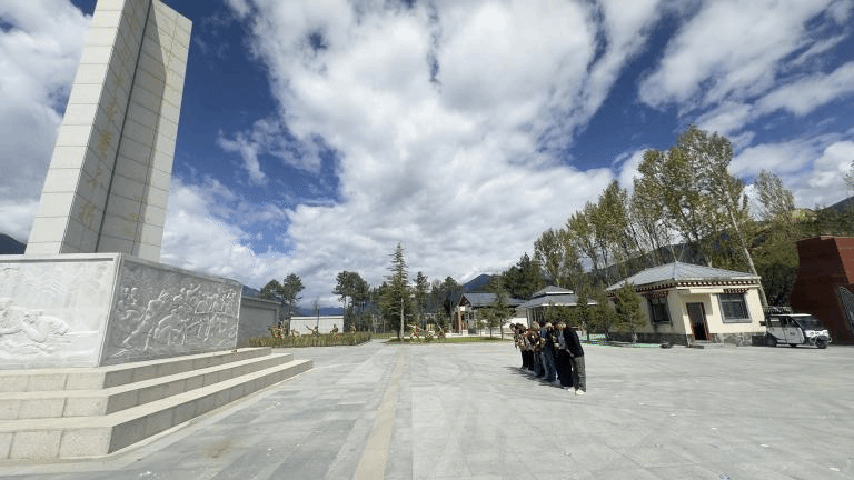 随后,研学队伍怀着崇敬之心前往林芝烈士陵园。这片松柏掩映的土地,承载着为信仰与使命献身的英雄故事。碑石肃穆,铭刻着援藏干部与革命先烈的牺牲与坚守。献花、鞠躬、默哀的仪式中,学生们感受到一种穿越时空的精神震撼。纪念墙上的文字诉说艰苦岁月中的无私奉献,历史的光影化作思想的火种,点燃青年心中的理想信念。红色基因不仅是缅怀的记忆,更是行动的召唤——它激励新时代青年将对祖国边疆的热爱,转化为扎根实践的信念与力量。